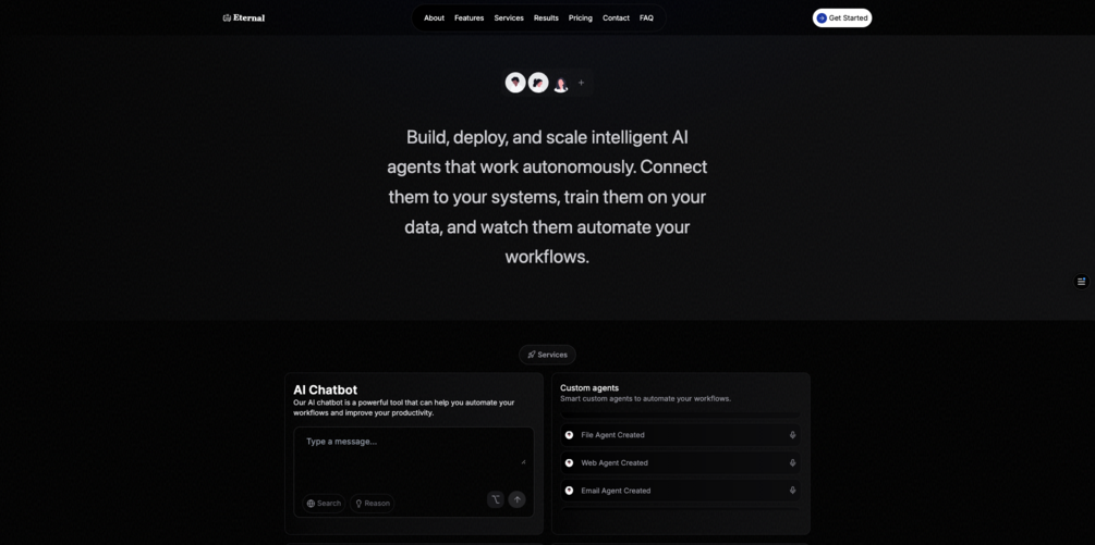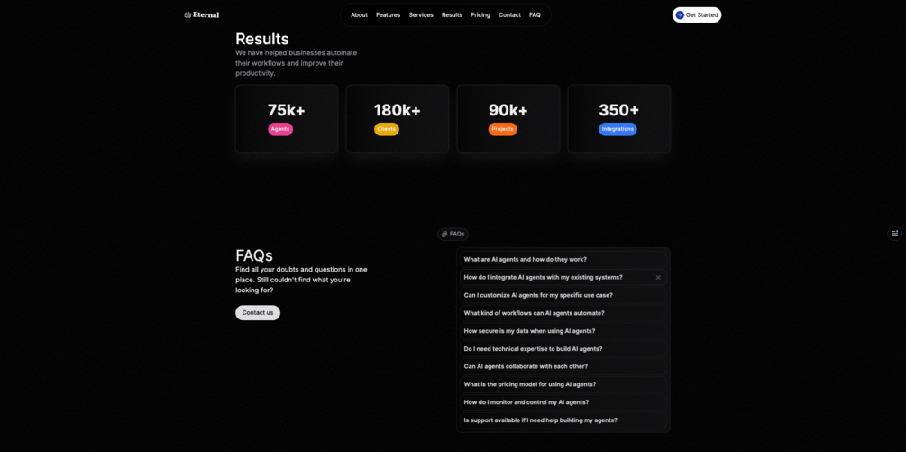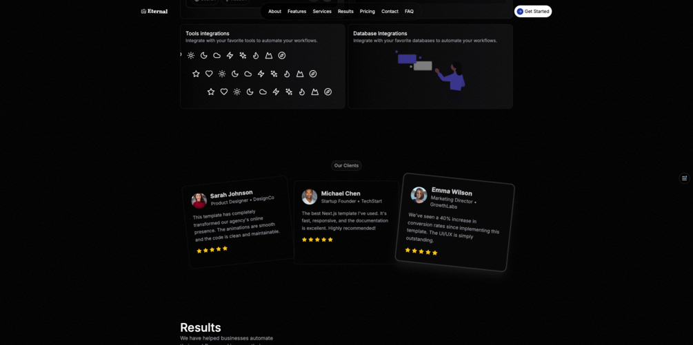 Eternal brings smooth animations, a dark theme aesthetic, and highly modular components β giving you a professional, production-ready landing page you can customize in minutes.