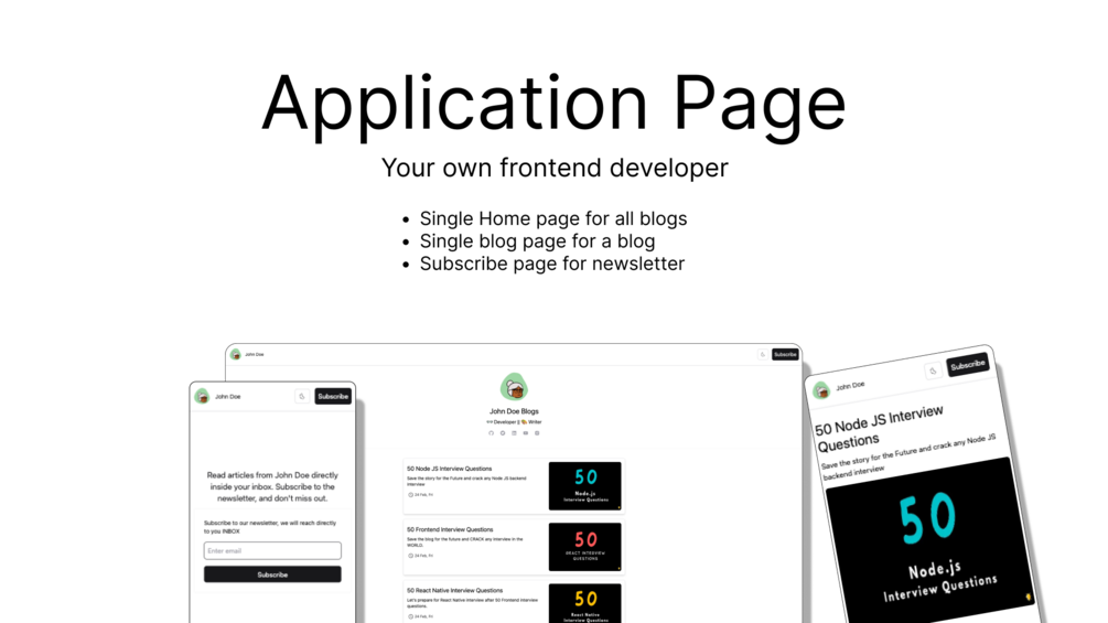 - The Navbar contains a dark and white theme toggle with a subscribe button