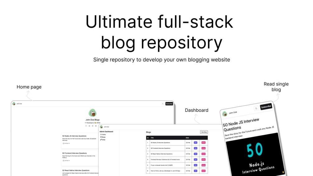 The Complete Full Stack Repository for Your Blogging Website. Get your blogging website ready instantly in seconds.