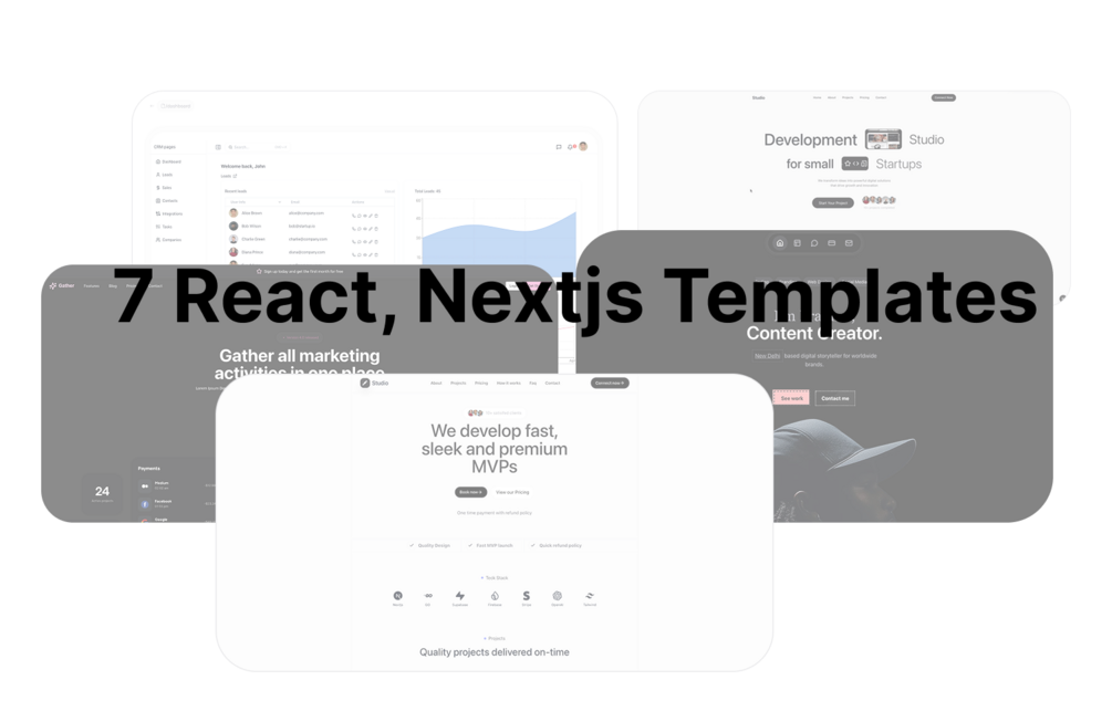 Welcome to the React, Next, and Tailwind templates bundle. In the last 3/4 months, I've released a couple of templates for frontend developers as follows
