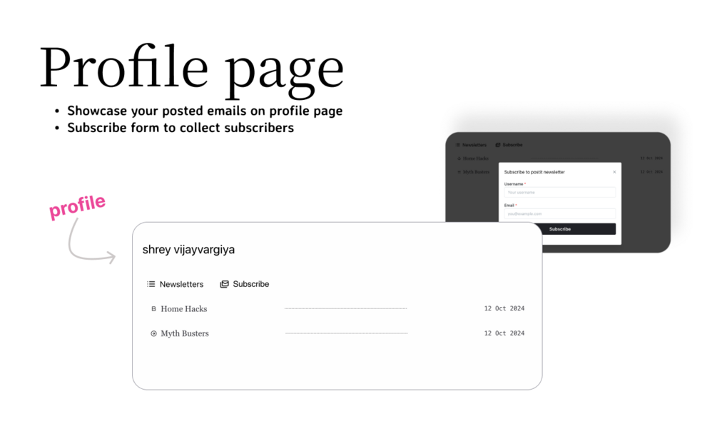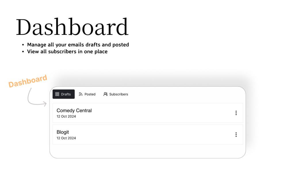 • Dashboard - Edit/Delete manage drafts/posted newsletters as well view all subscribers