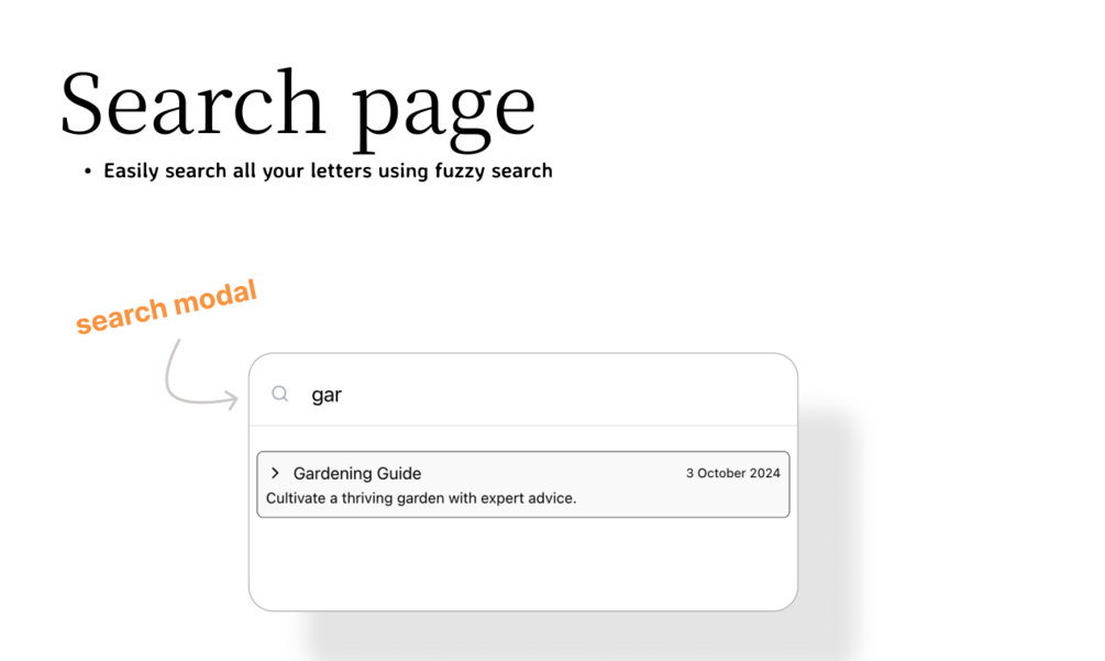 • Search Modal - Search all drafts/posted newsletters using fuzzy search